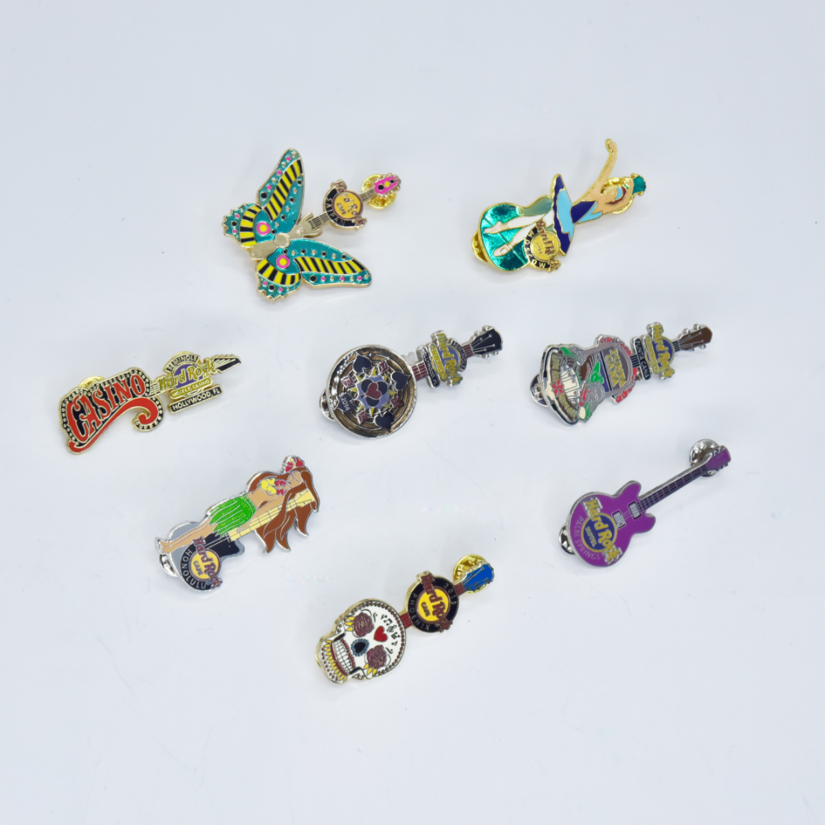 We offer a variety of production styles to cater to different aesthetic preferences and budgets. The most common options include hard enamel pins, which feature a smooth, polished finish with enamel flush to the metal edges for a sleek, high-end look; soft enamel pins, which have a textured surface with raised metal lines and enamel slightly below the metal, adding depth and character; die-struck pins (no color), which focus on intricate metal detailing for a classic, minimalist vibe; printed pins, ideal for designs with complex patterns or gradients; and even eco-friendly wood enamel pin options for those seeking a more sustainable choice.